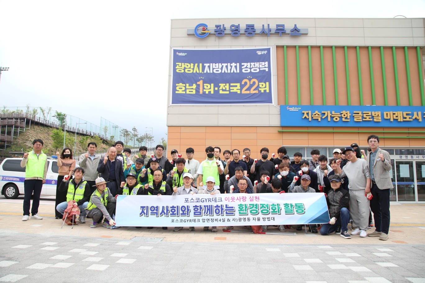 포스코GYR테크는 지난 4월 19일 광영동 자율 방범대와 함께 지역 환경정화 봉사활동을 실시했다.