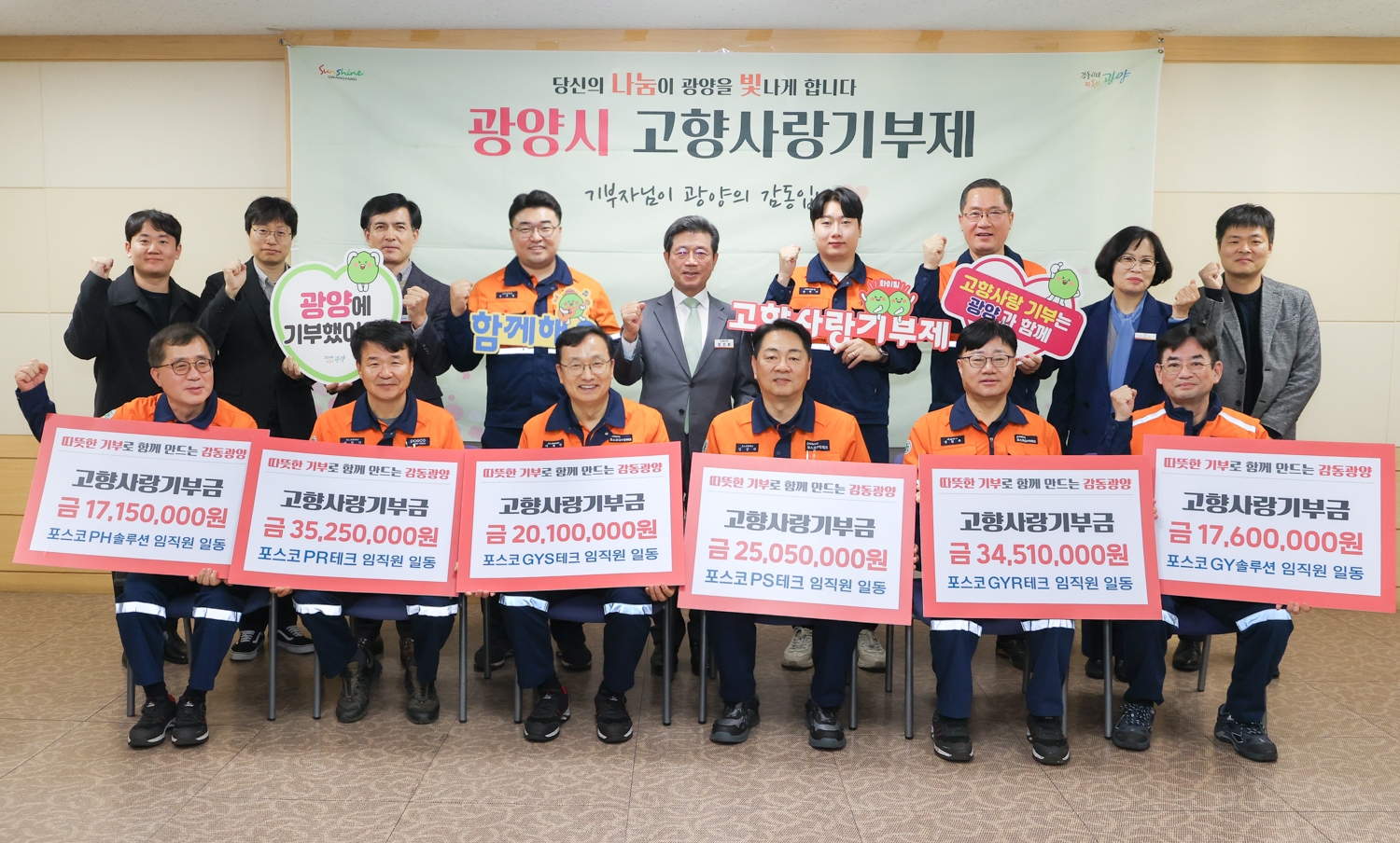 정인화 광양시장은 "두 도시의 따뜻한 협력과 나눔에 깊이 감사드린다. 기부금은 시민 삶의 질 향상과 지역 발전을 위한 다양한 정책에 소중하게 활용하겠다."라고 소감을 밝혔다.