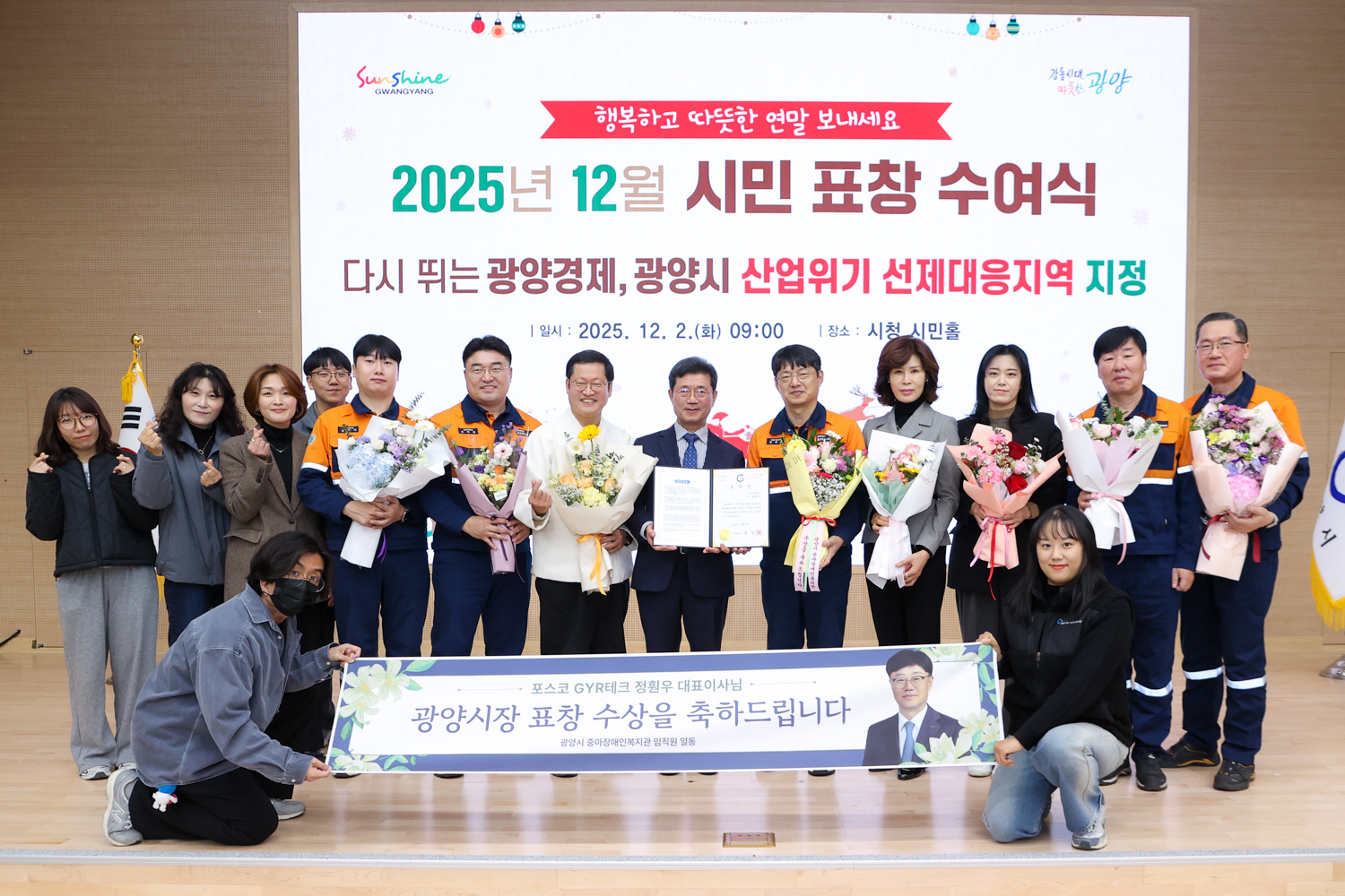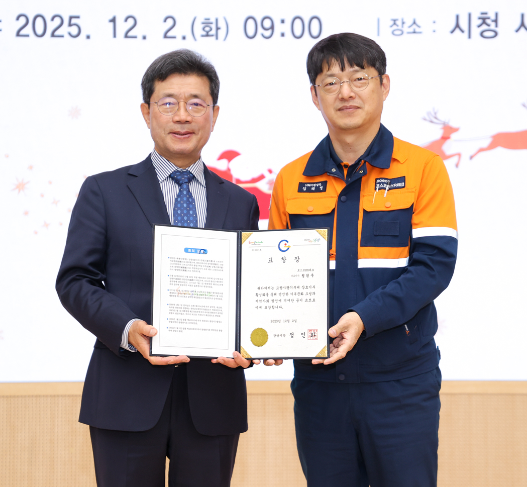 포스코GYR테크 정훤우 대표이사가 지난 12월 2일 광양시청 시민홀에서 열린 시상식에서 ‘광양시 시정발전 유공 시민 표창’을 받았다.