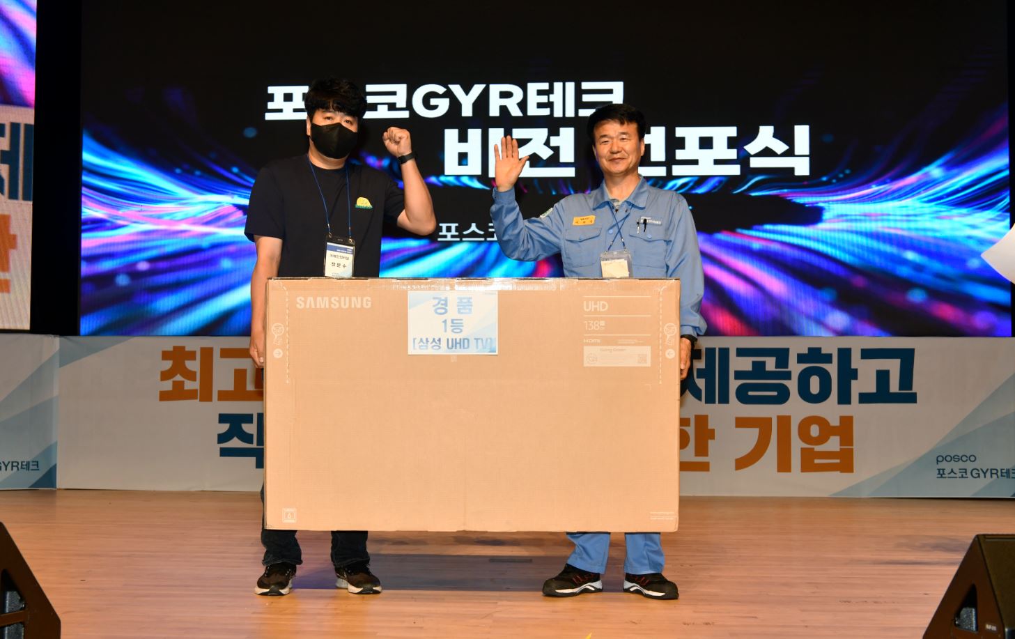 ▲ 비전선포식 당일 응모권 추첨으로 당첨된 직원에게 경품을 제공하는 사진