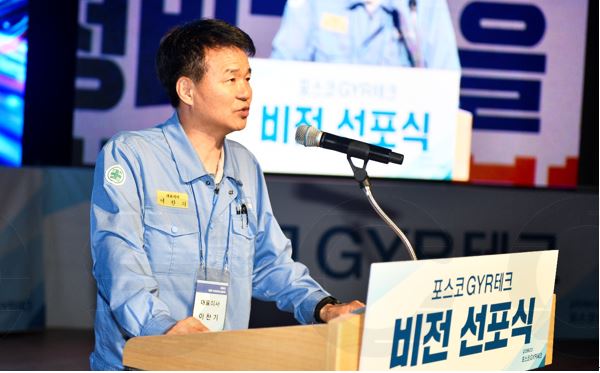 ▲ 포스코GYR테크 이찬기 대표이사가 비전을 선포하고 있는 사진