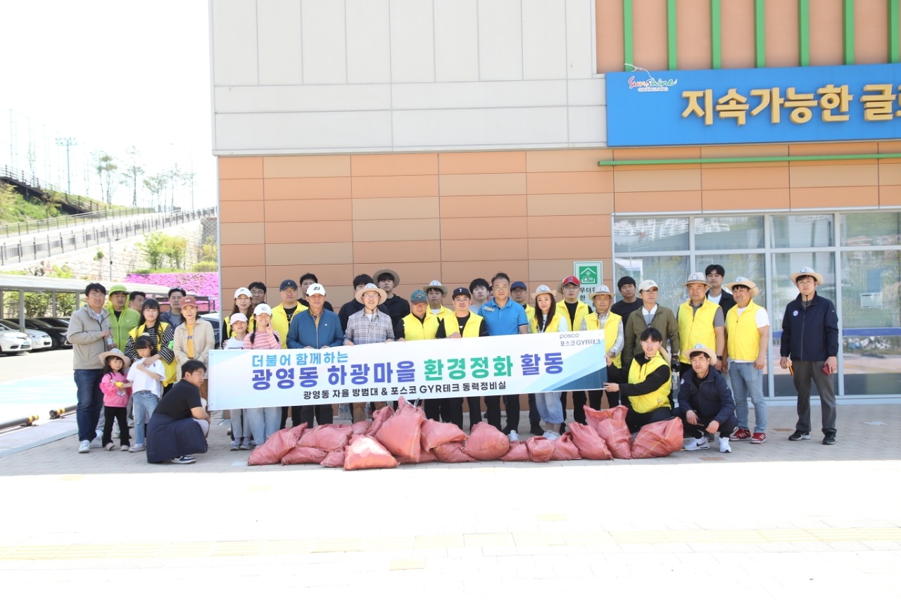 포스코GYR테크는 광영동 일대 환경정화 활동을 진행하였고, 임영갑 동력정비실장 외 14명의 동력정비실 소속 인원들이 환경정화활동에 참여하였다.
