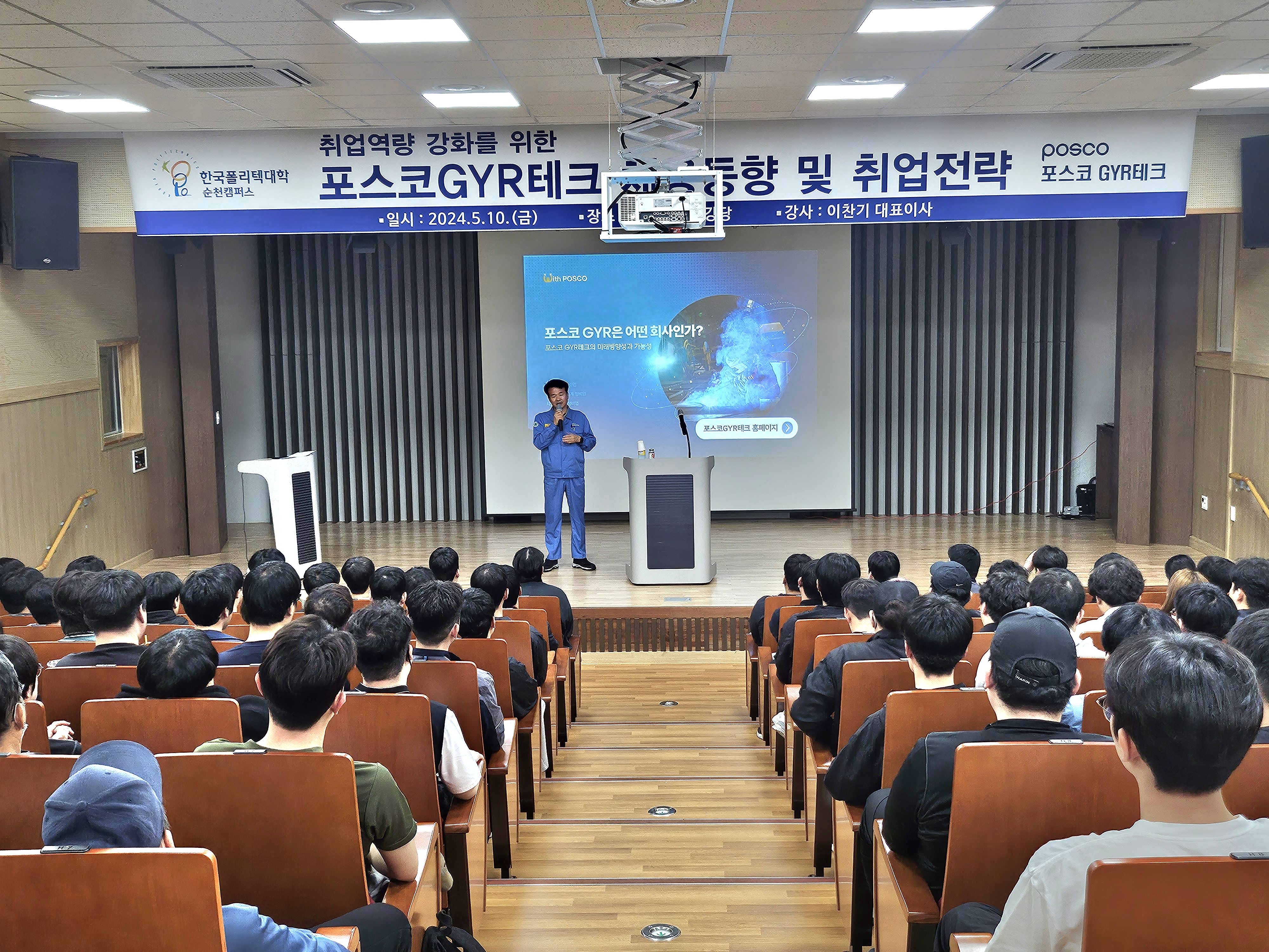 포스코GYR테크(대표이사:이찬기)는 지난 5월 10일 한국폴리텍대학 순천캠퍼스 학생 대상 취업 특강을 진행하였다.