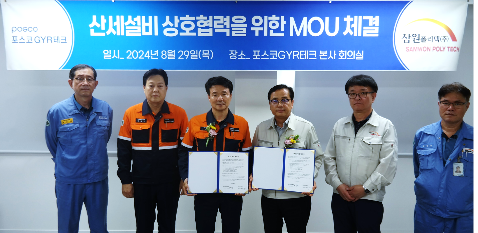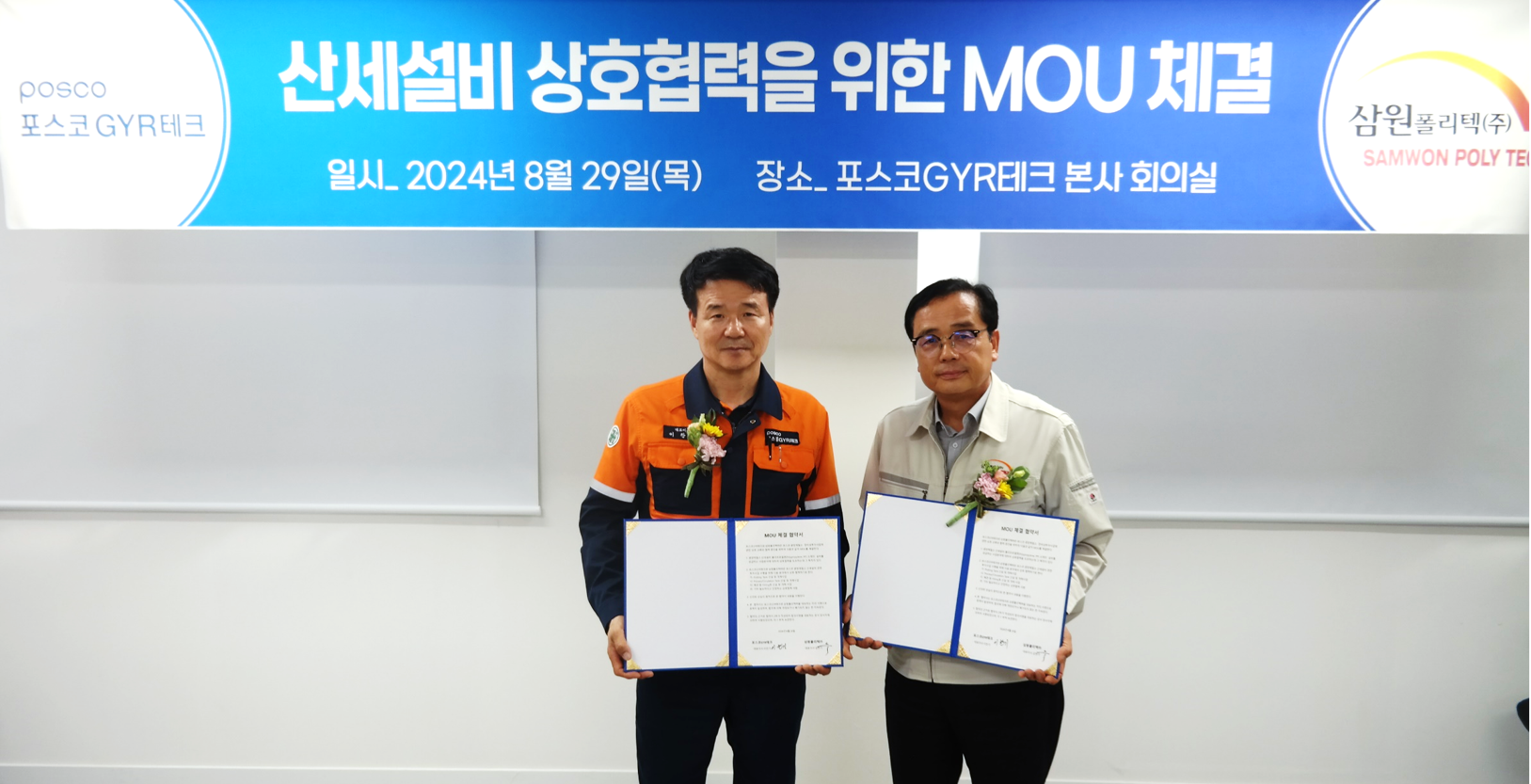 포스코GYR테크 (대표이사:이찬기)는 24년 8월 29일 삼원폴리텍(주)와 정비성투자사업에 관한 상호 교류와 협력 증진을 위하여 MOU를 체결하였다.