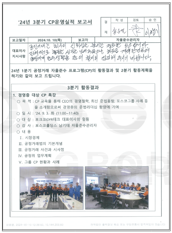 [포스코GYR테크]2024년 3분기 CP운영현황 보고서